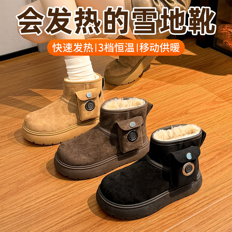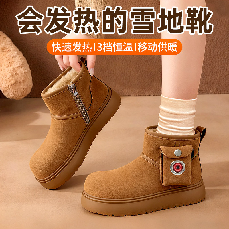 加热鞋充电发热雪地靴保暖棉鞋男女可行走电热鞋子冬新款暖脚神器
