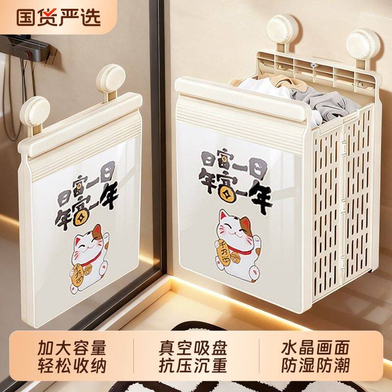 吸盘脏衣篓家用可折叠脏衣篮洗衣篮收纳篮衣服收纳筐浴室衣物挂式