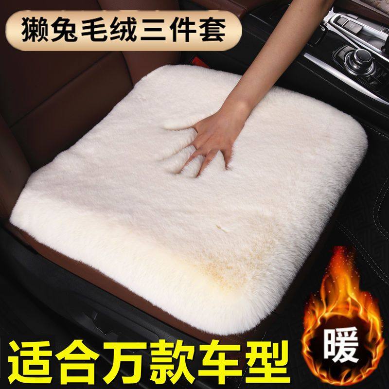 汽车坐垫冬季兔毛绒单座无靠背三件套羊毛短毛保暖防滑加厚通用垫