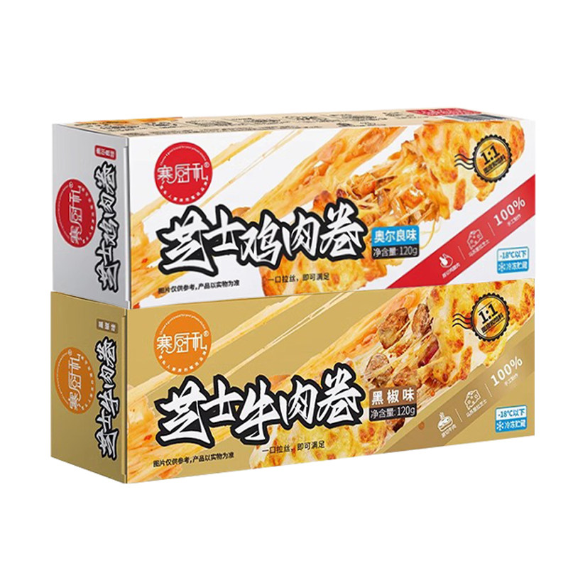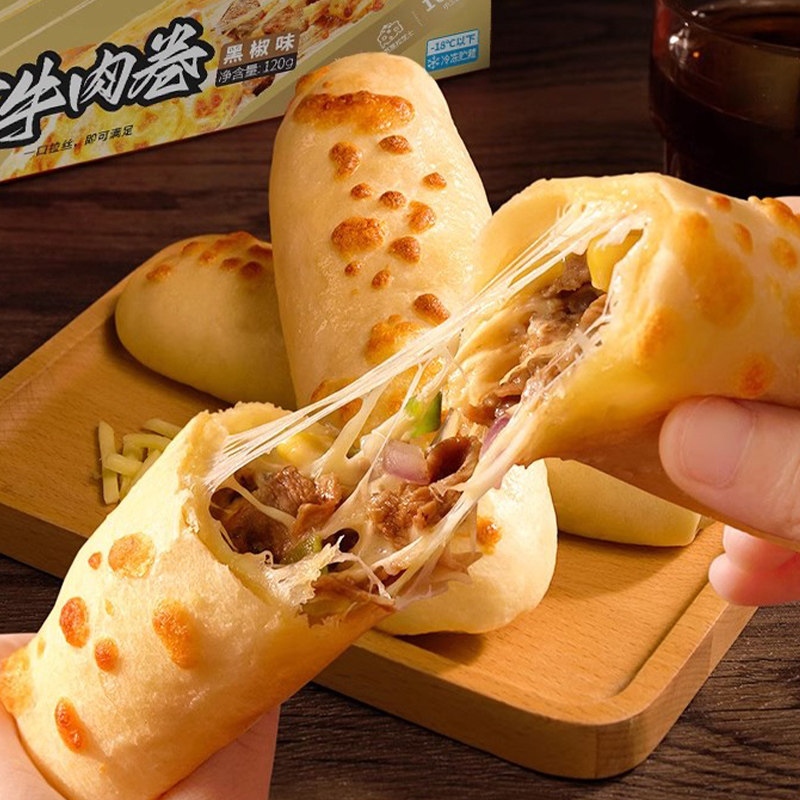 推荐理由:华富记/赛厨私烤芝士黑椒牛肉卷/榴莲芝士奥尔良鸡肉卷披萨饼微波