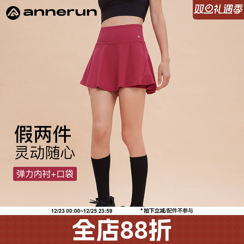 annerun防走光健身运动短裙女速干2025新款瑜伽跑步吸汗网球裙潮