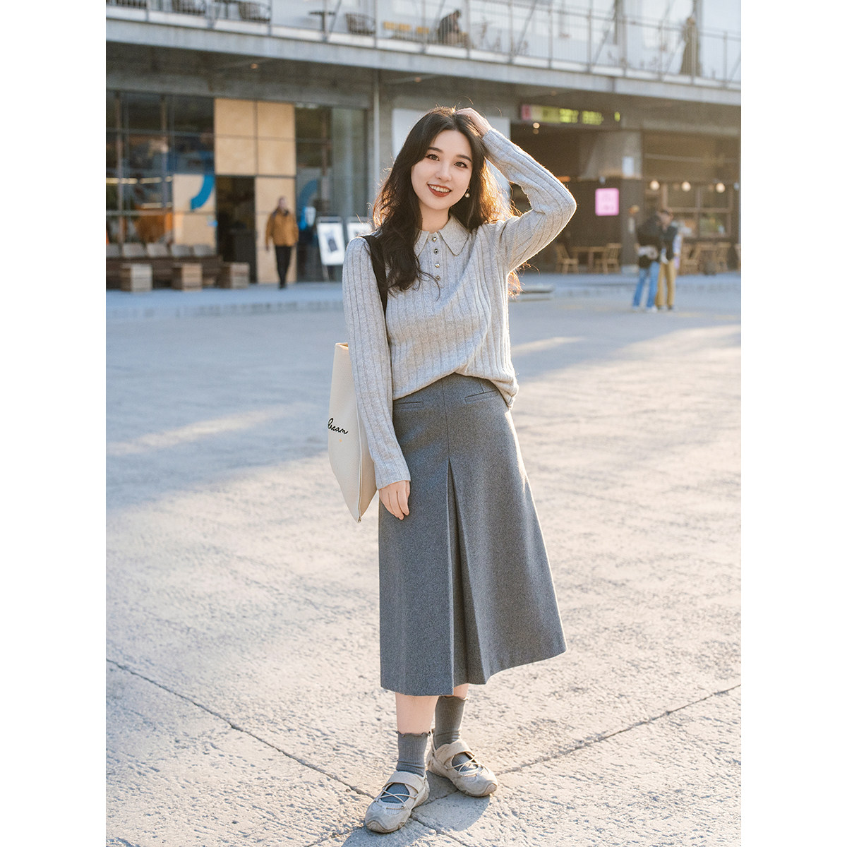 apipedream如一梦 坑条山羊绒绵羊毛莱赛尔polo领套头衫/周末书会
