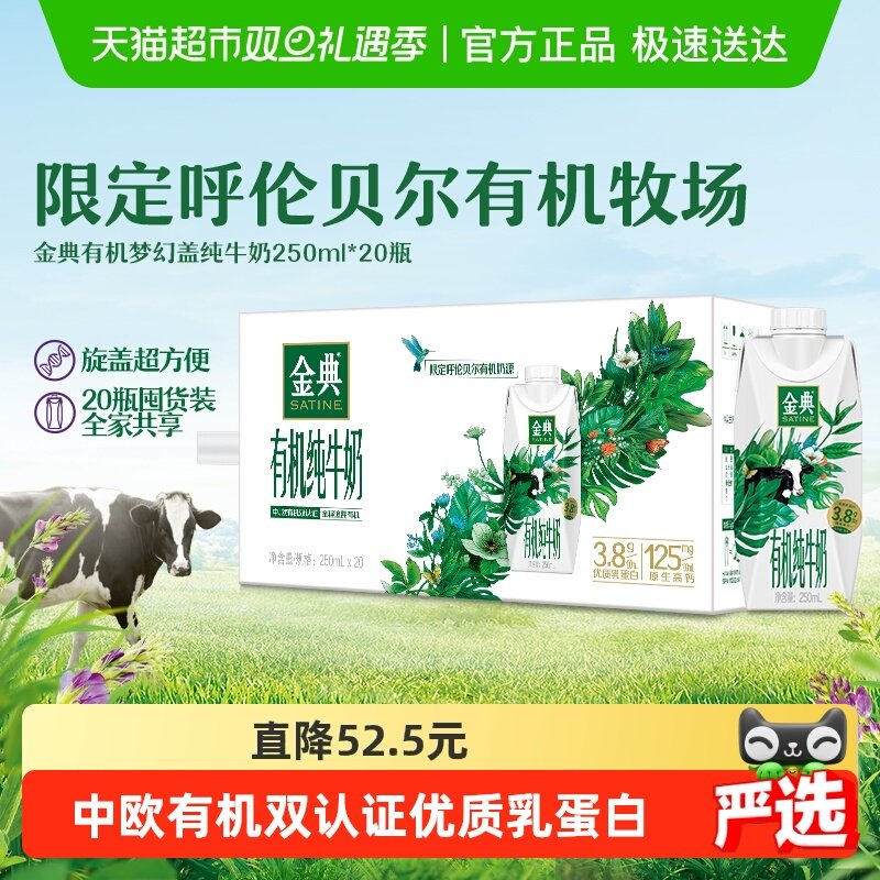 伊利金典梦幻盖有机纯牛奶250ml*20瓶整箱3.8g优质蛋白
