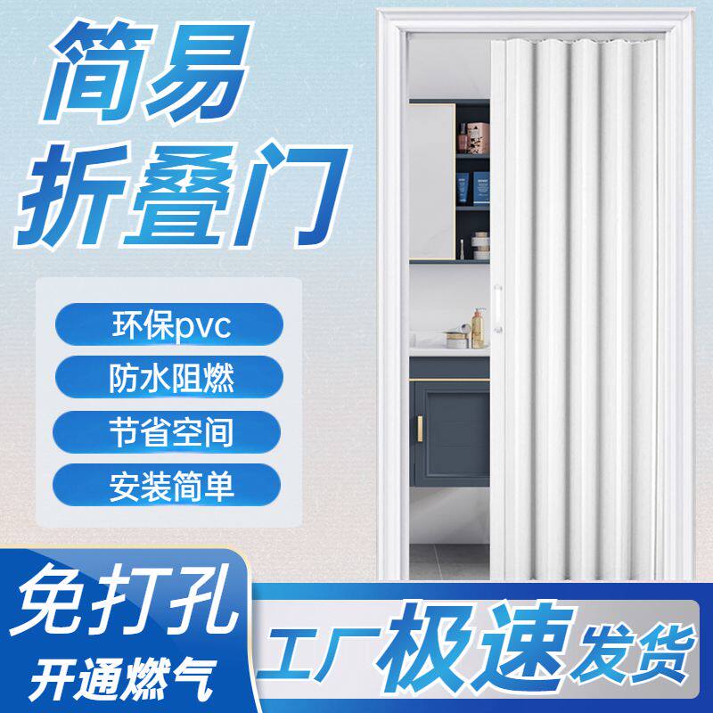 PVC折叠门 推拉开放式厨房商铺隔断移门免打孔燃气验收专用临时门