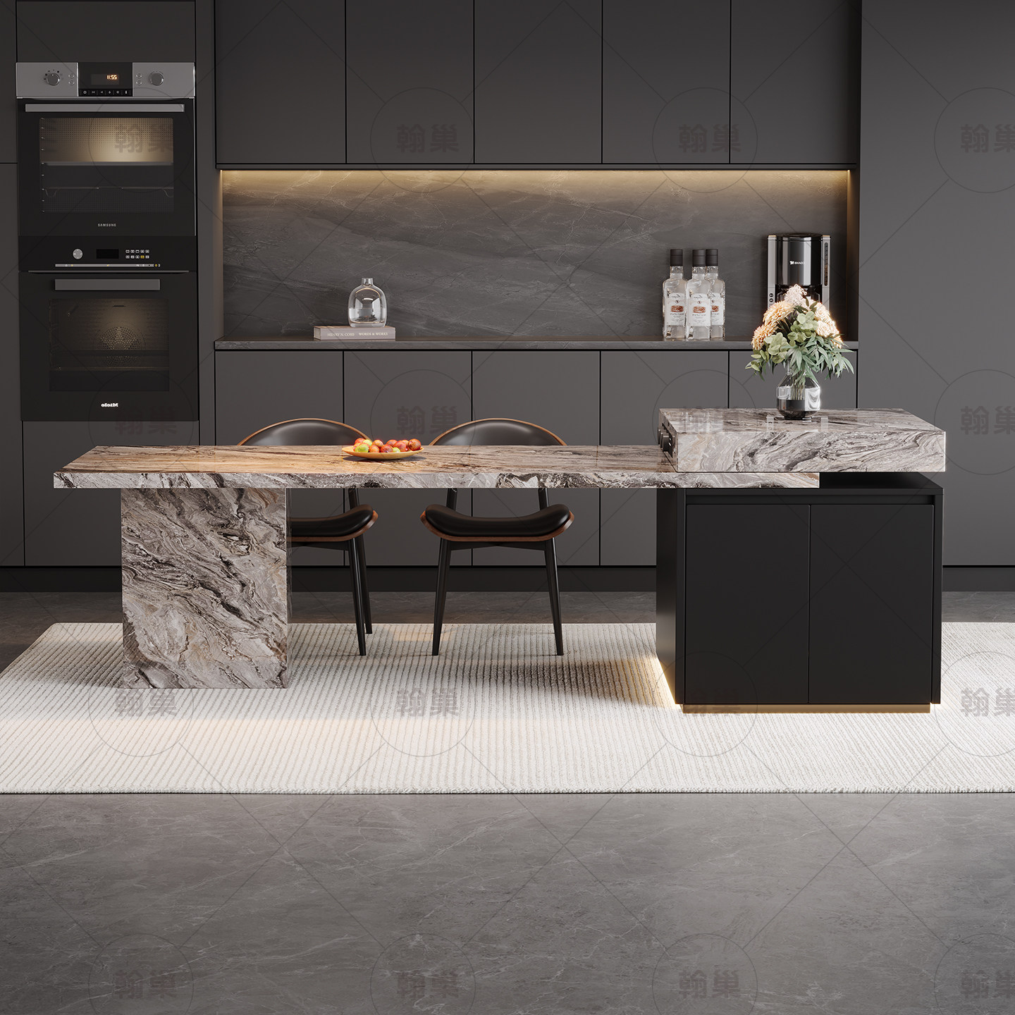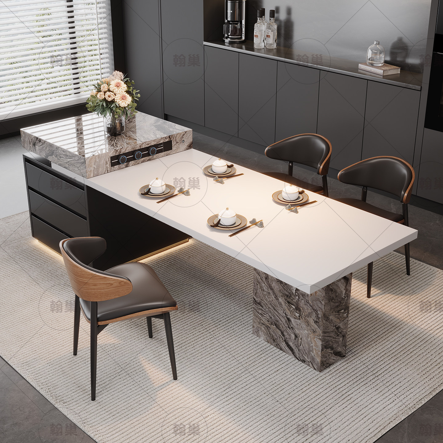 推荐理由:意式岩板岛台餐桌一体家用可伸缩大别墅高端多功能厨房中岛台餐桌