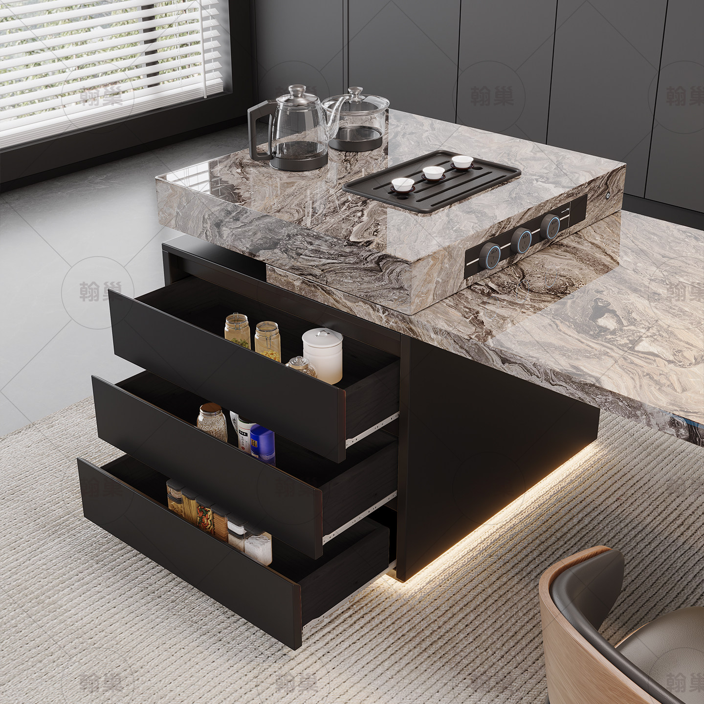 意式岩板岛台餐桌一体家用可伸缩大别墅高端多功能厨房中岛台餐桌
