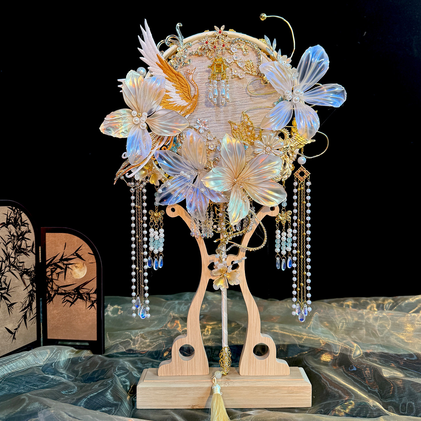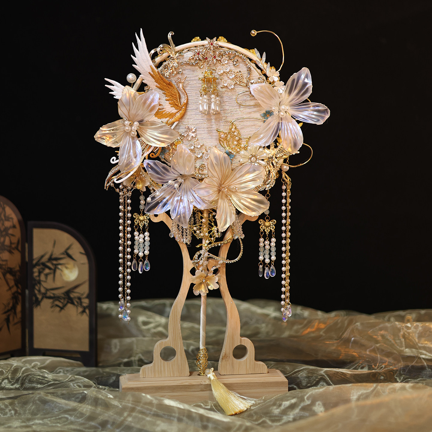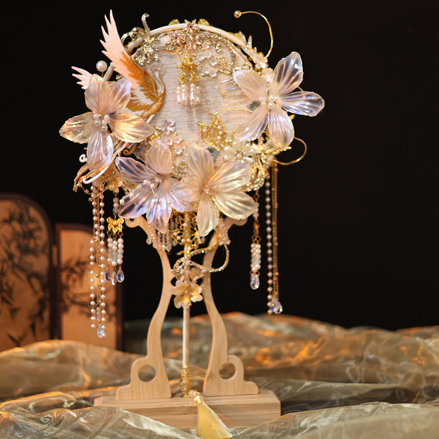 物语中式婚礼新娘结婚团扇手工diy材料包高档成品扇出嫁喜扇重工