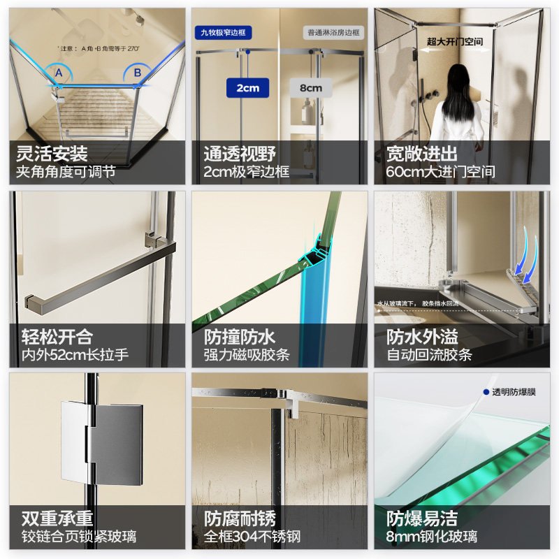 【定制】九牧窄边平开门定制钻石形铰链淋浴房浴室淋浴隔断E15系