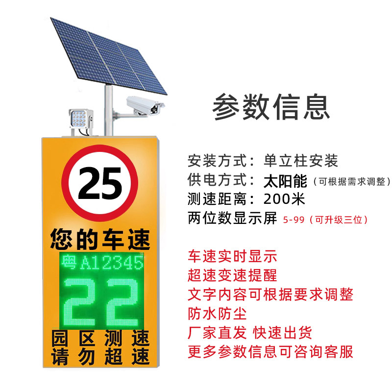 速度显示仪雷达测速园区厂区车辆测速仪太阳能雷达测速仪超速提醒