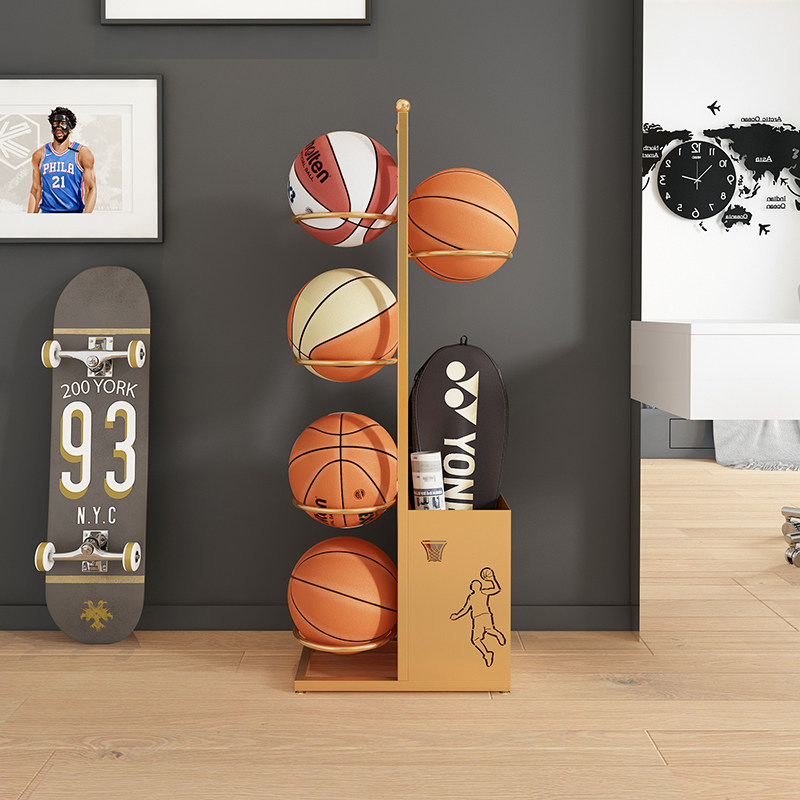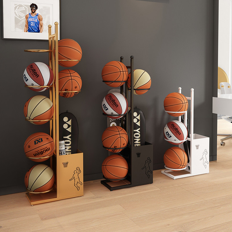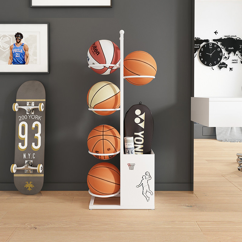 推荐理由:简易家用儿童篮球收纳架球类摆放置物架幼儿园球架羽毛球拍收纳筐