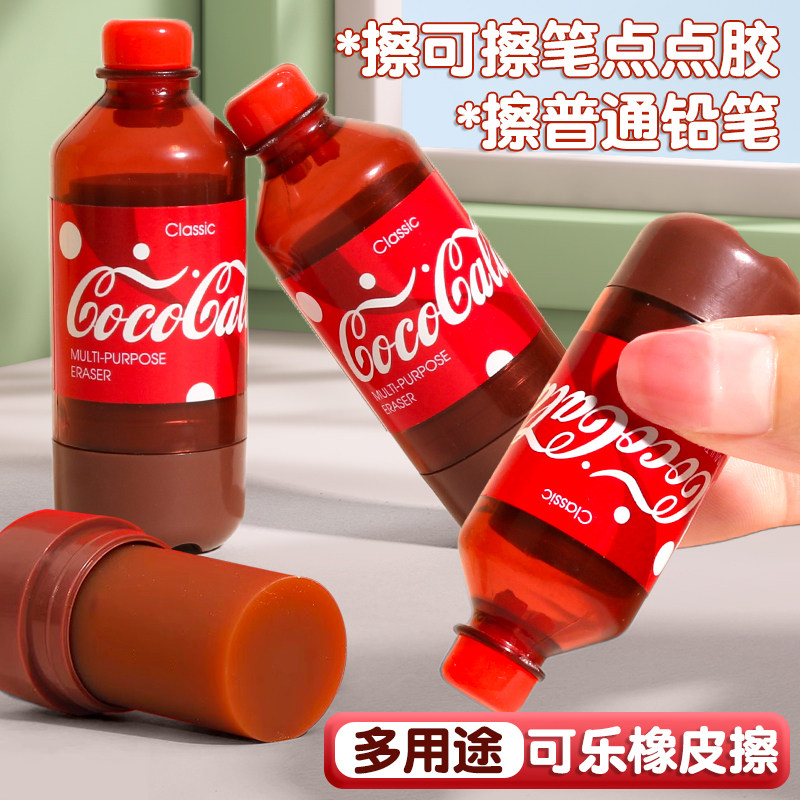 可乐瓶多功能饮料瓶橡皮擦热可擦笔汽水两用小学生文具干净点点胶