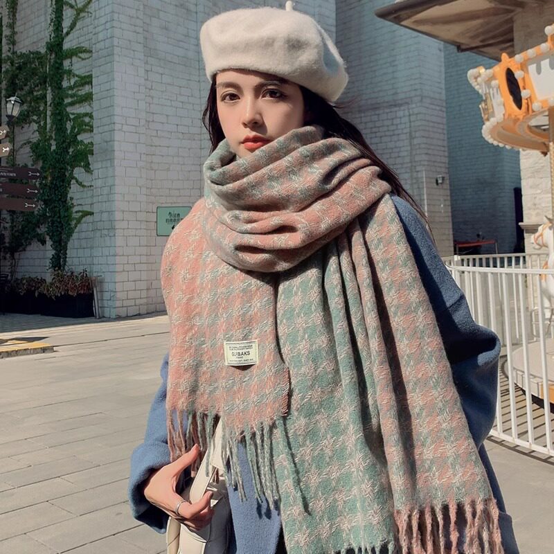 推荐理由:围巾女冬季2025新款百搭韩系千鸟格子氛围感披肩外搭保暖情侣围脖