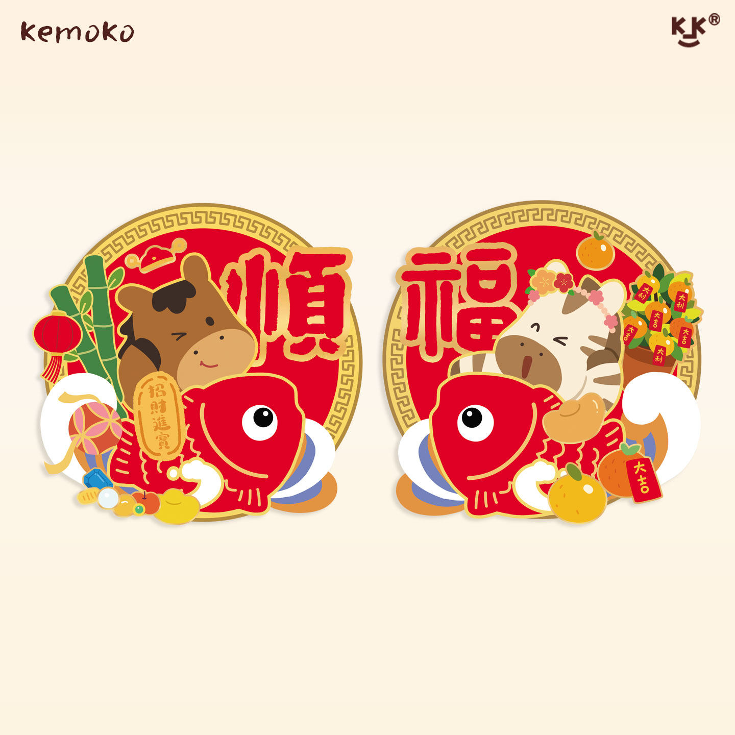 kemoko新年2026马年原创设计福字贴卡通对联入户大门家门宿舍对联