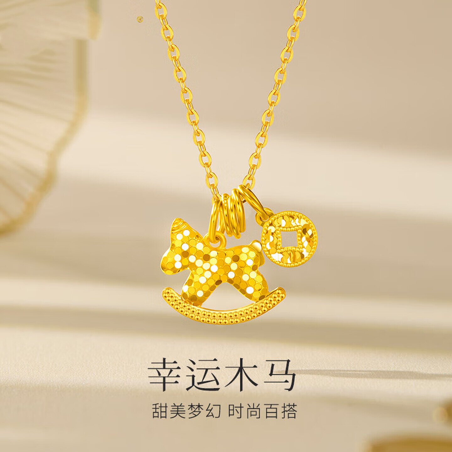 马上有钱碎碎冰黄金色沙金项链新中式吊坠小众毛衣链送女友送闺蜜