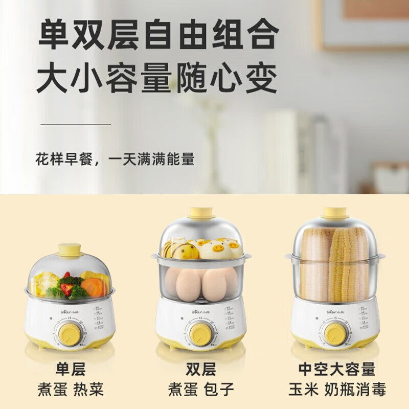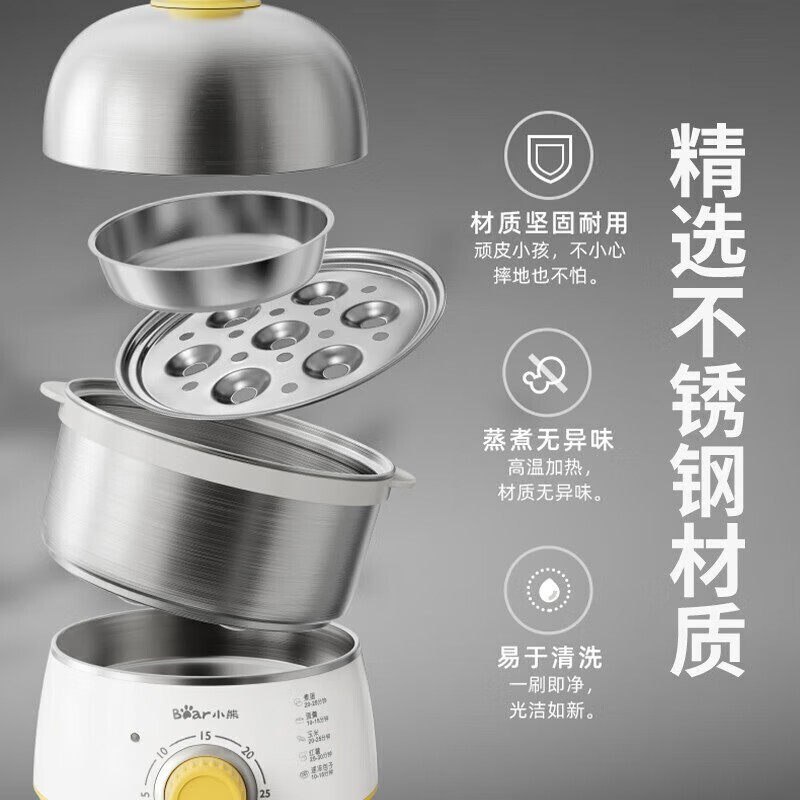 小熊煮蛋器蒸蛋器家用小型定时自动断电不锈钢小电蒸锅早餐机神器