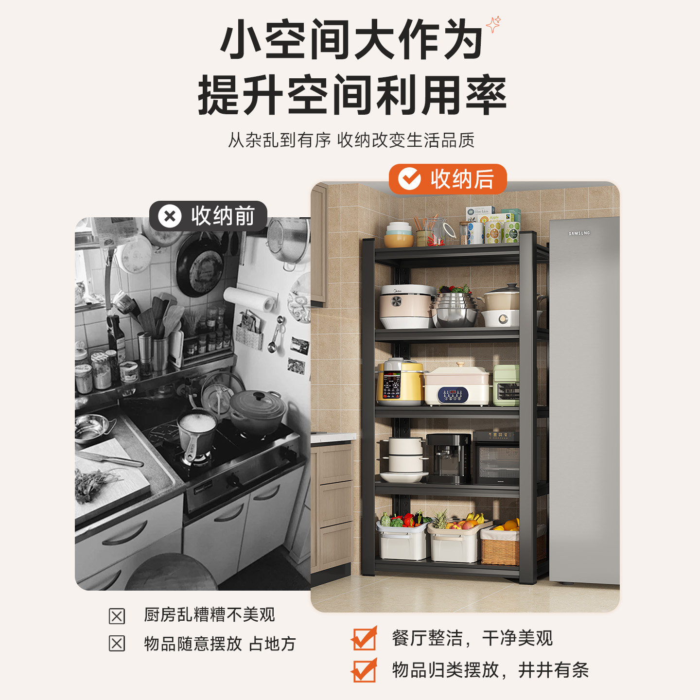 厨房置物架多功能多层收纳架落地一体靠墙储物架微波炉烤箱铁架子