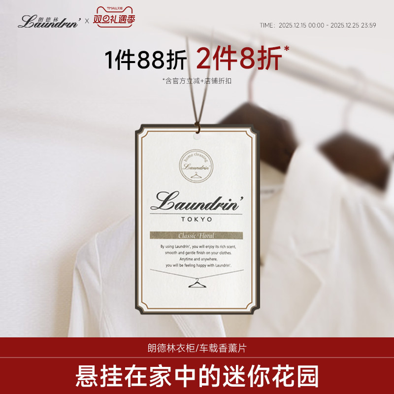 Laundrin朗德林家用衣柜香薰片衣物香氛衣橱除味香水香包车载挂件