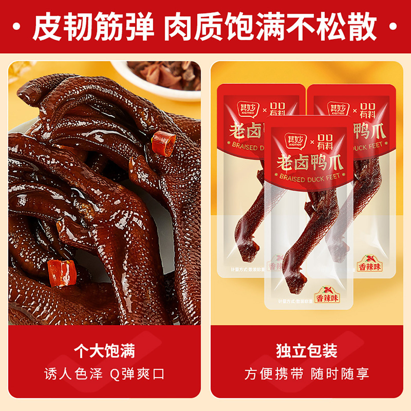 老卤鸭爪小包装开袋即食香辣鸭掌脚卤味肉类熟食下酒菜解馋小零食
