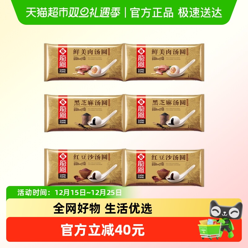 龙凤汤圆黑芝麻红豆沙鲜美肉汤圆多口味组合装冷冻半成品