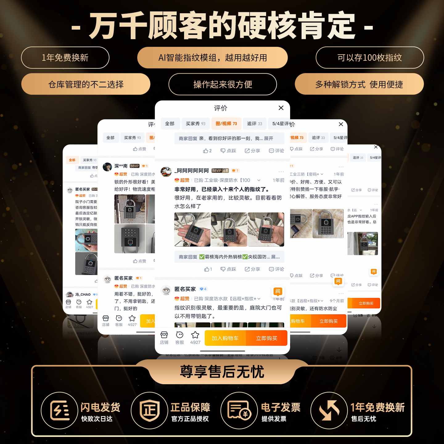 推荐理由:指纹挂锁仓库工业防盗户外大门智能锁新型密码锁防水不锈钢电子锁