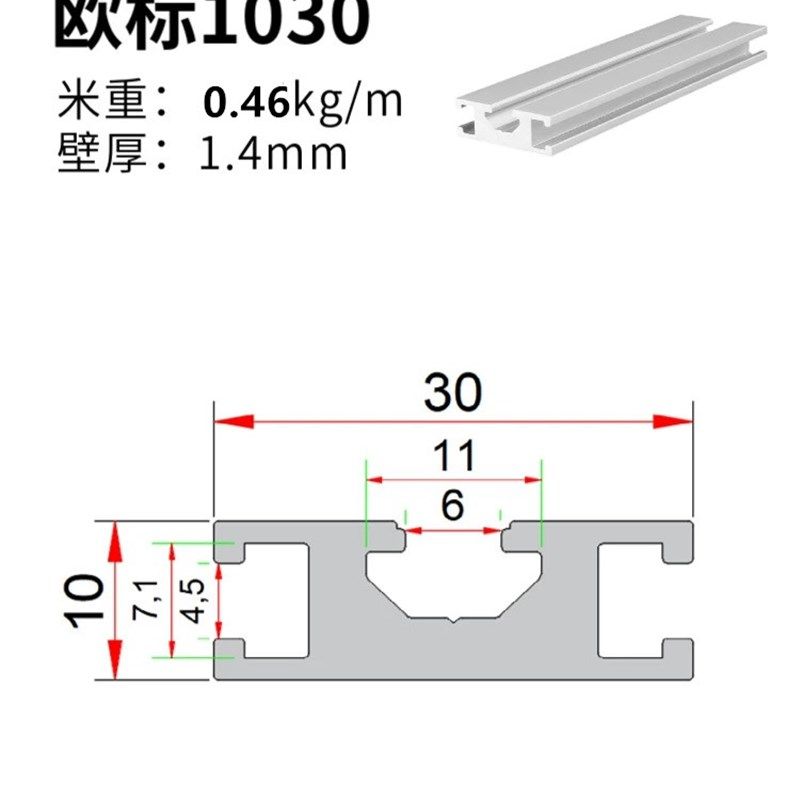 推荐理由:欧标1030铝型材铝合金型材10*30三槽铝M合金门框机架用流水线铝材