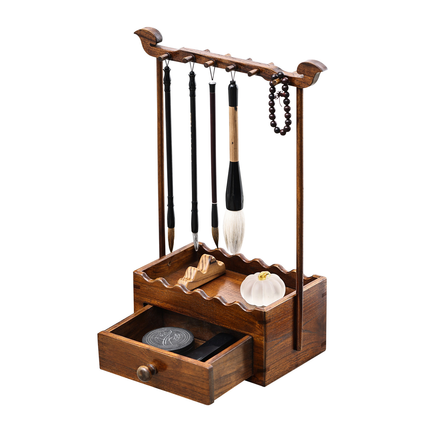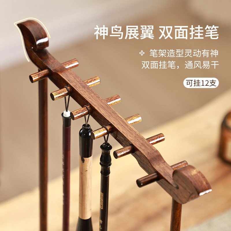 异丽中式实木毛笔笔架古风挂架文房书法收纳置物架文昌毛笔架笔挂