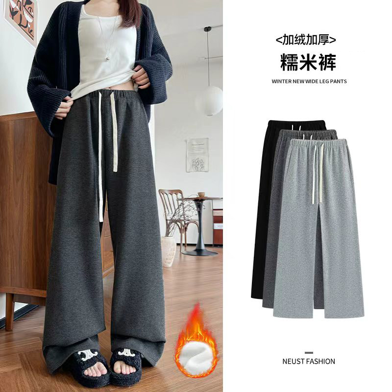 唐狮DESSO秋冬新款糯米裤高腰垂感宽松加绒直筒阔腿裤