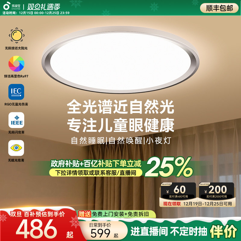 孩视宝卧室护眼吸顶灯全光谱儿童房侧发光书房主卧官方旗舰店ah33