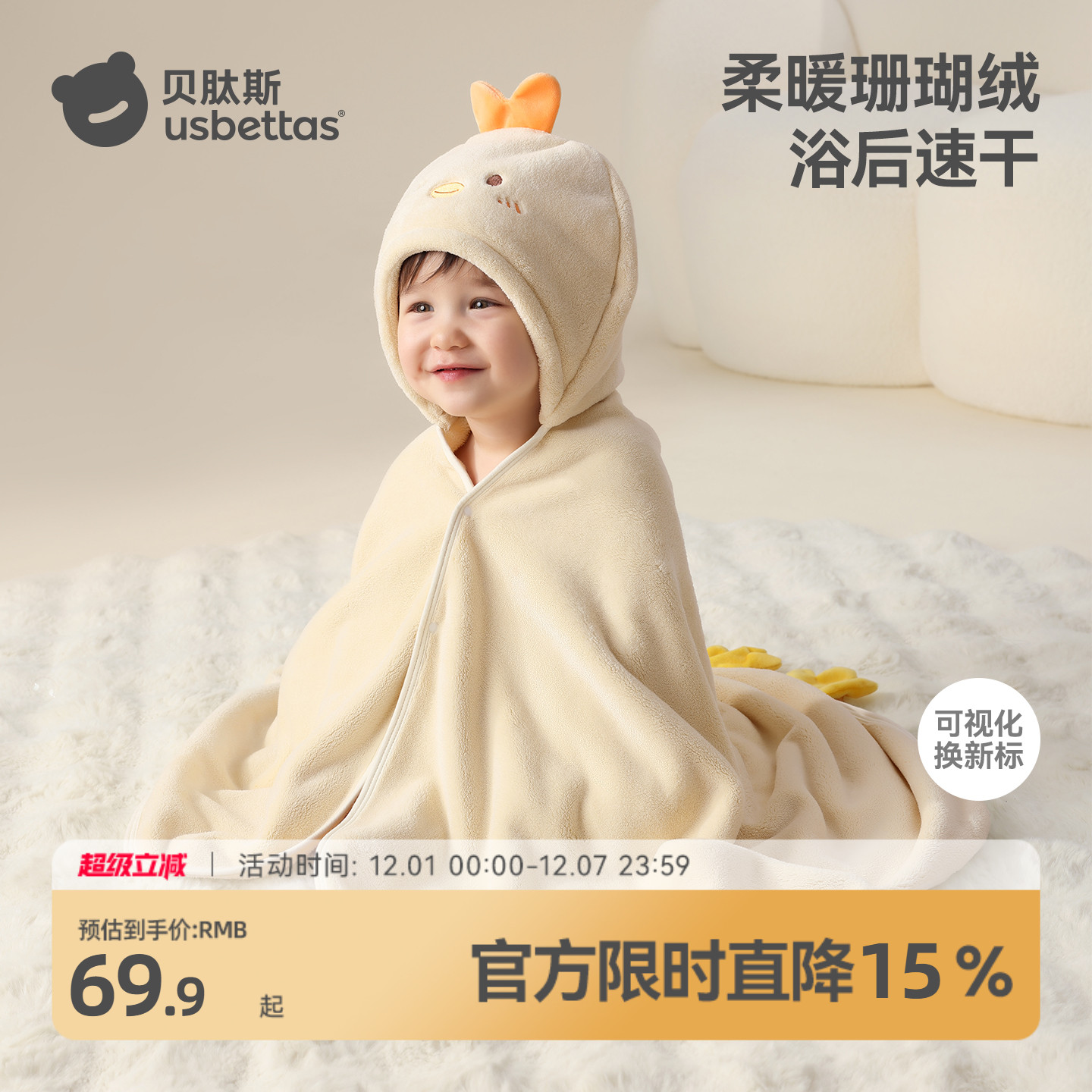 贝肽斯儿童浴巾超软新生婴儿带帽斗篷可穿宝宝速干保暖a类洗澡巾