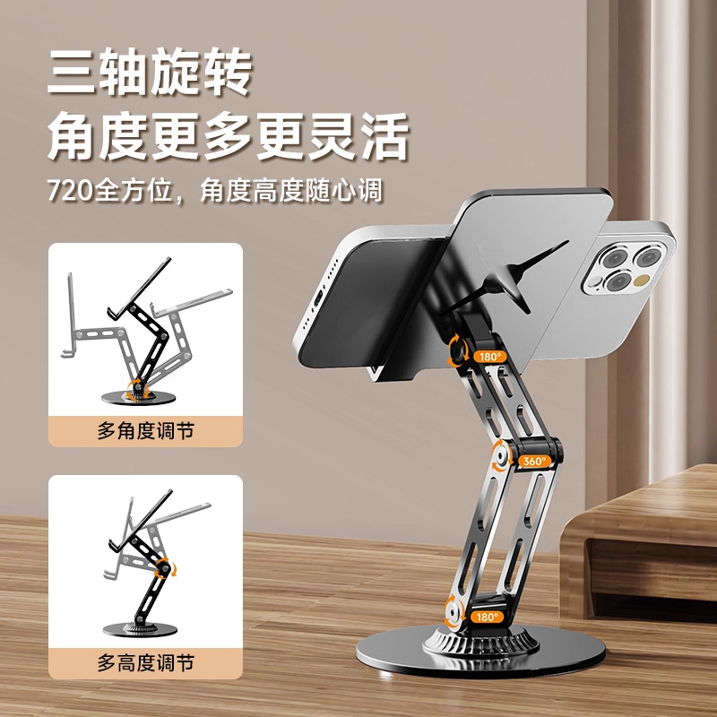 手机支架桌面懒人可360度旋转升降ipad平板电脑支撑架子直播视频追剧多功能通用便携折叠办公室宿舍桌上通用