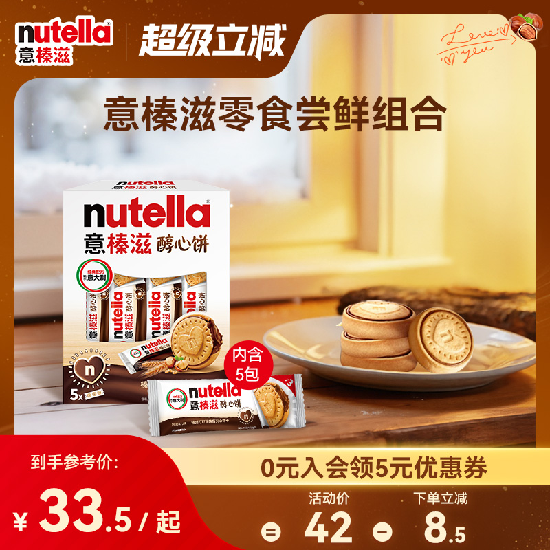【尝鲜】意榛滋nutella费列罗巧克力醇心饼榛果可可调味酱饼干
