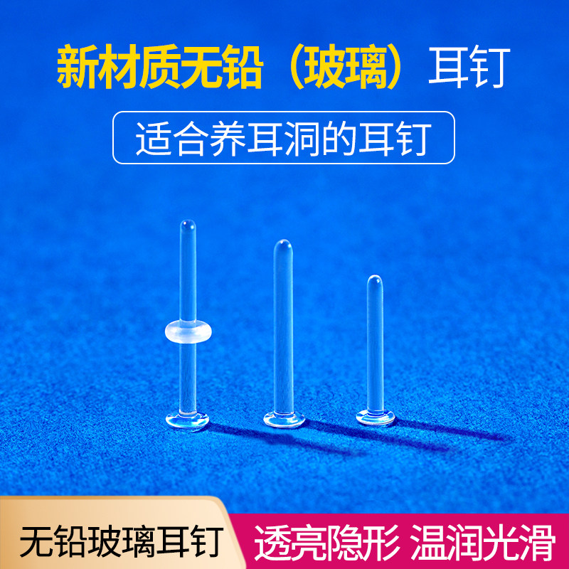 玻璃耳钉无铅养耳洞透明隐形耳棒鼻钉耳骨钉学生耳环饰品睡觉免摘