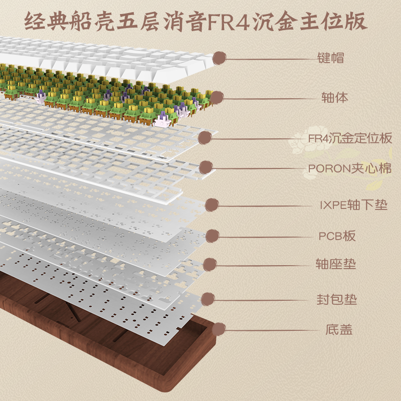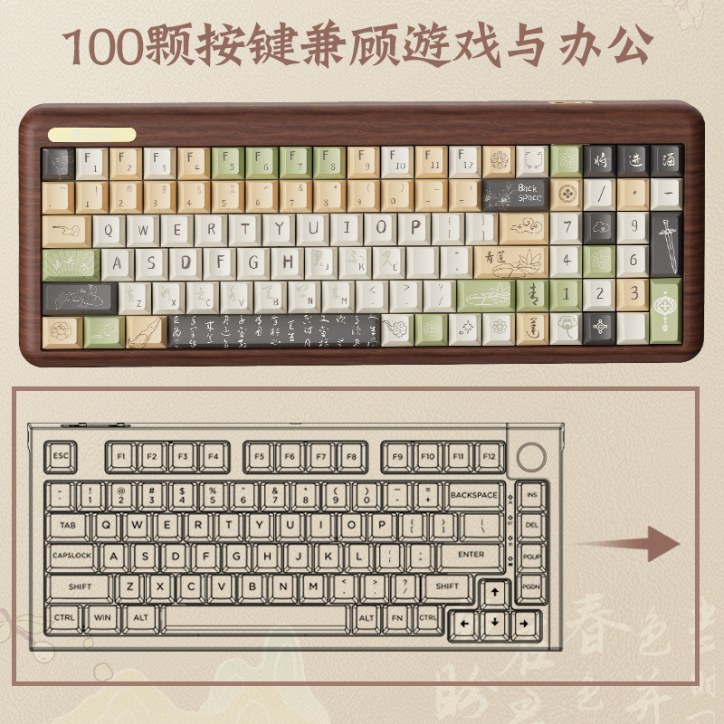 雷咖泽R100胡桃木客制化机械键盘100配列三模热插拔木坨坨套件