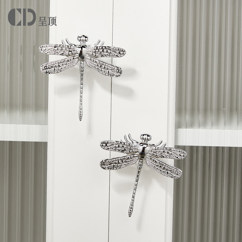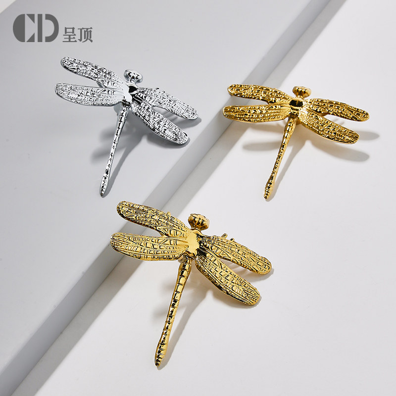 蜻蜓黄铜儿童房可爱衣柜门把手抽屉美式北欧酒柜轻奢金色银色拉手