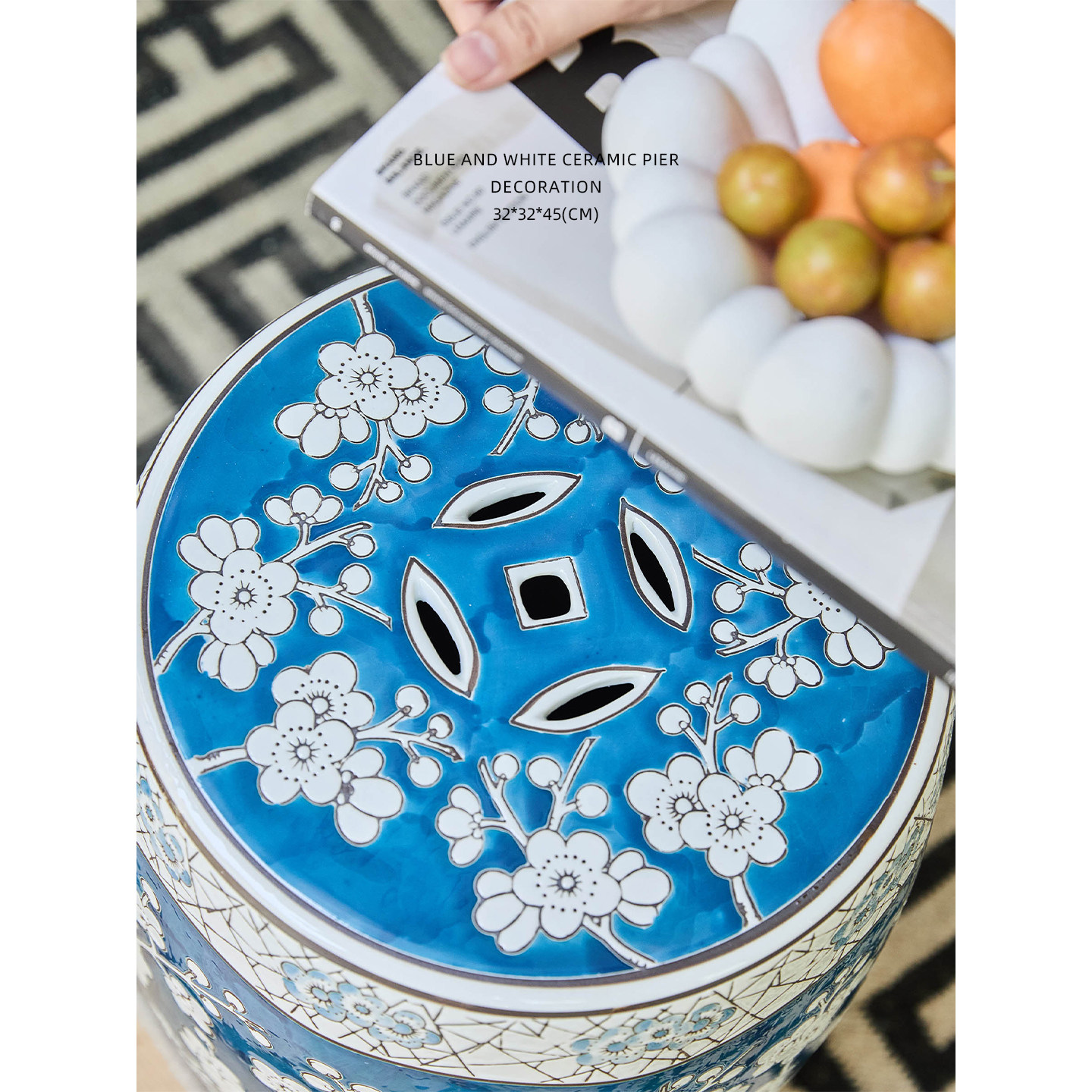 推荐理由:迷屿家居 新中式手绘青花陶瓷鼓凳小边几茶几换鞋凳坐墩凳子摆件