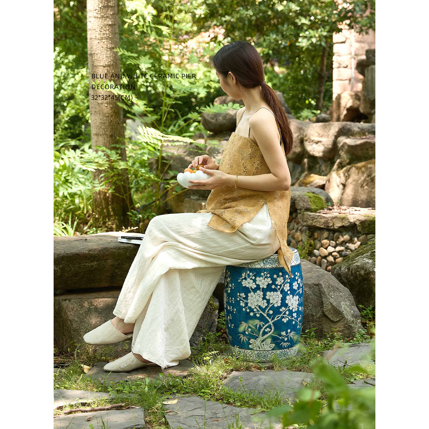 迷屿家居 新中式手绘青花陶瓷鼓凳小边几茶几换鞋凳坐墩凳子摆件