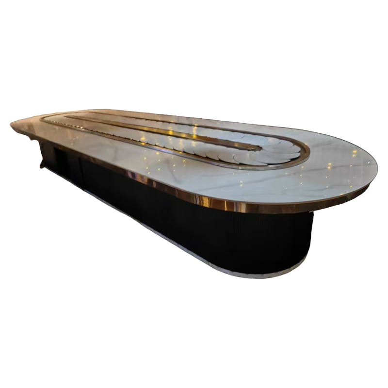 酒店椭圆形电动餐桌长方形包厢自助餐台饭店会所20人旋转小火锅桌
