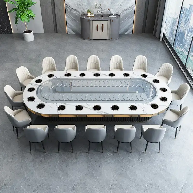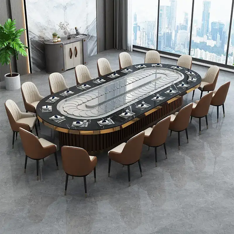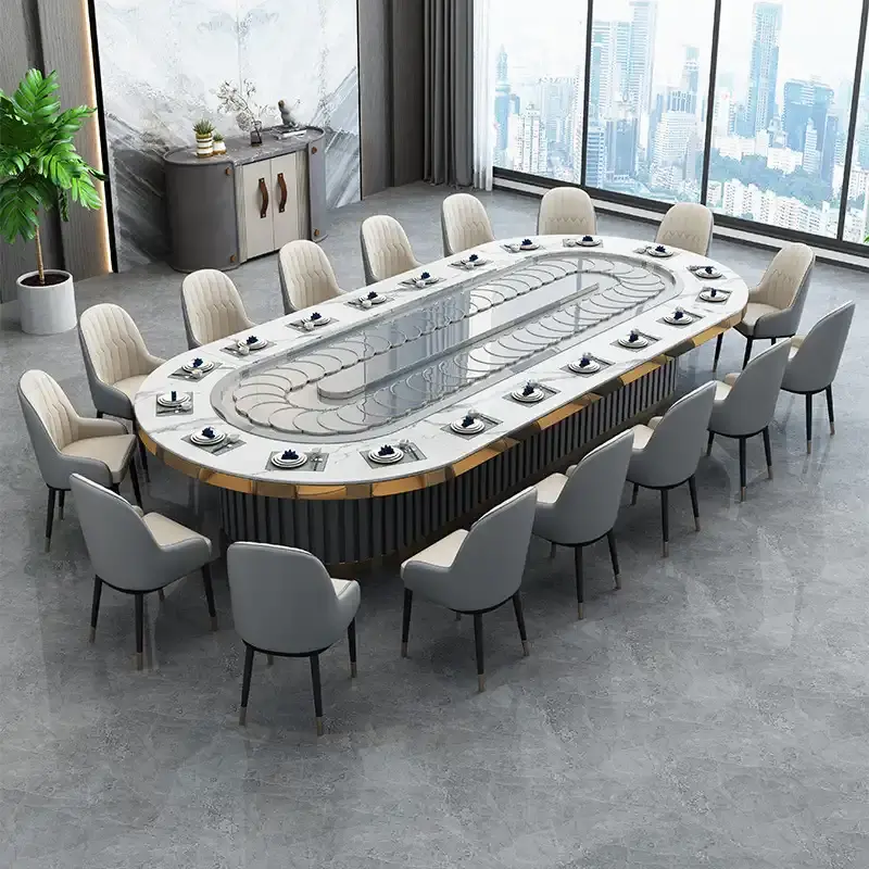 推荐理由:酒店椭圆形电动餐桌长方形包厢自助餐台饭店会所20人旋转小火锅桌