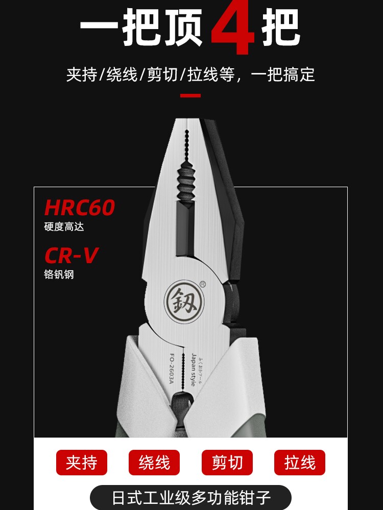 福冈老虎钳钢丝钳工业级多功能斜口钳尖嘴钳德国进口电工专用钳子