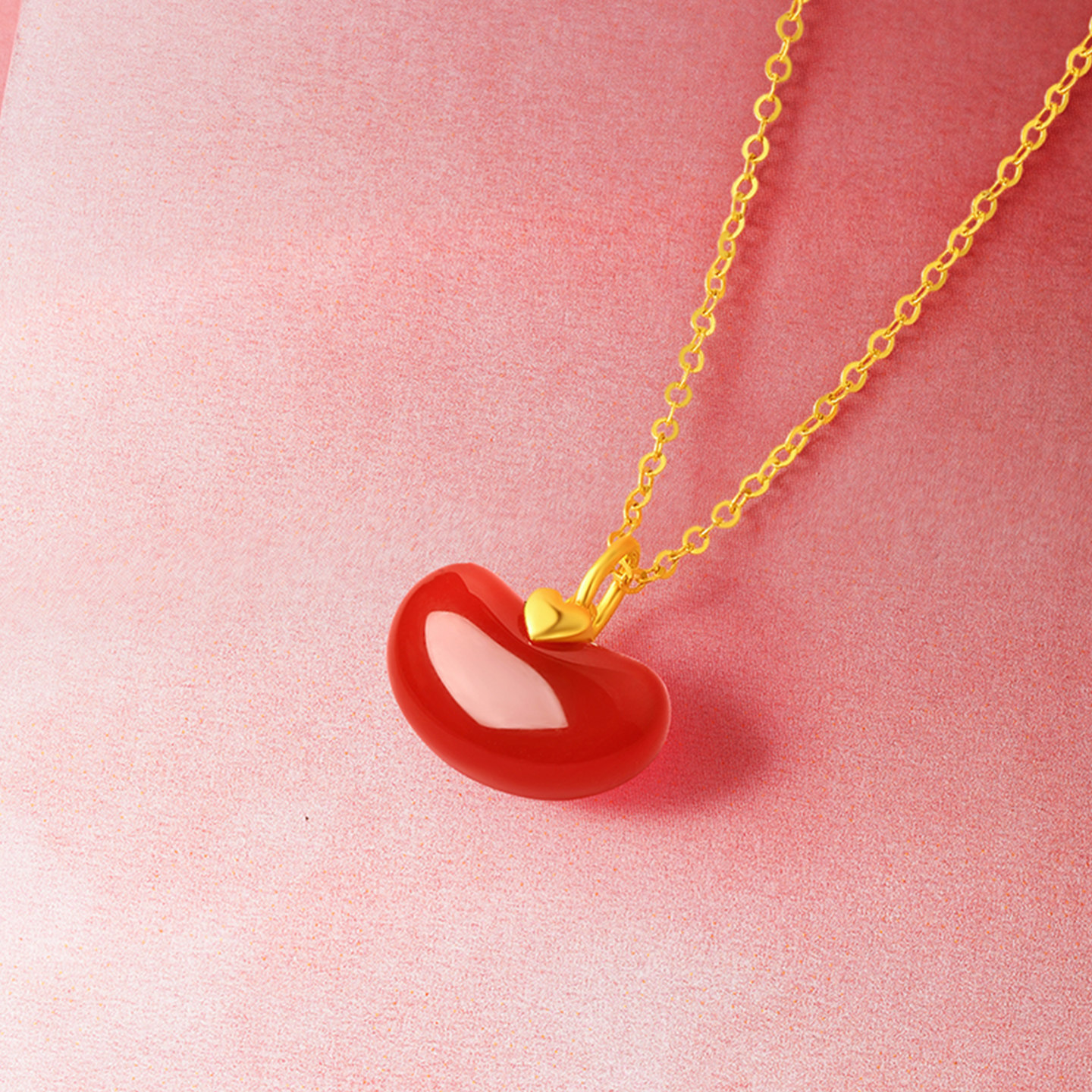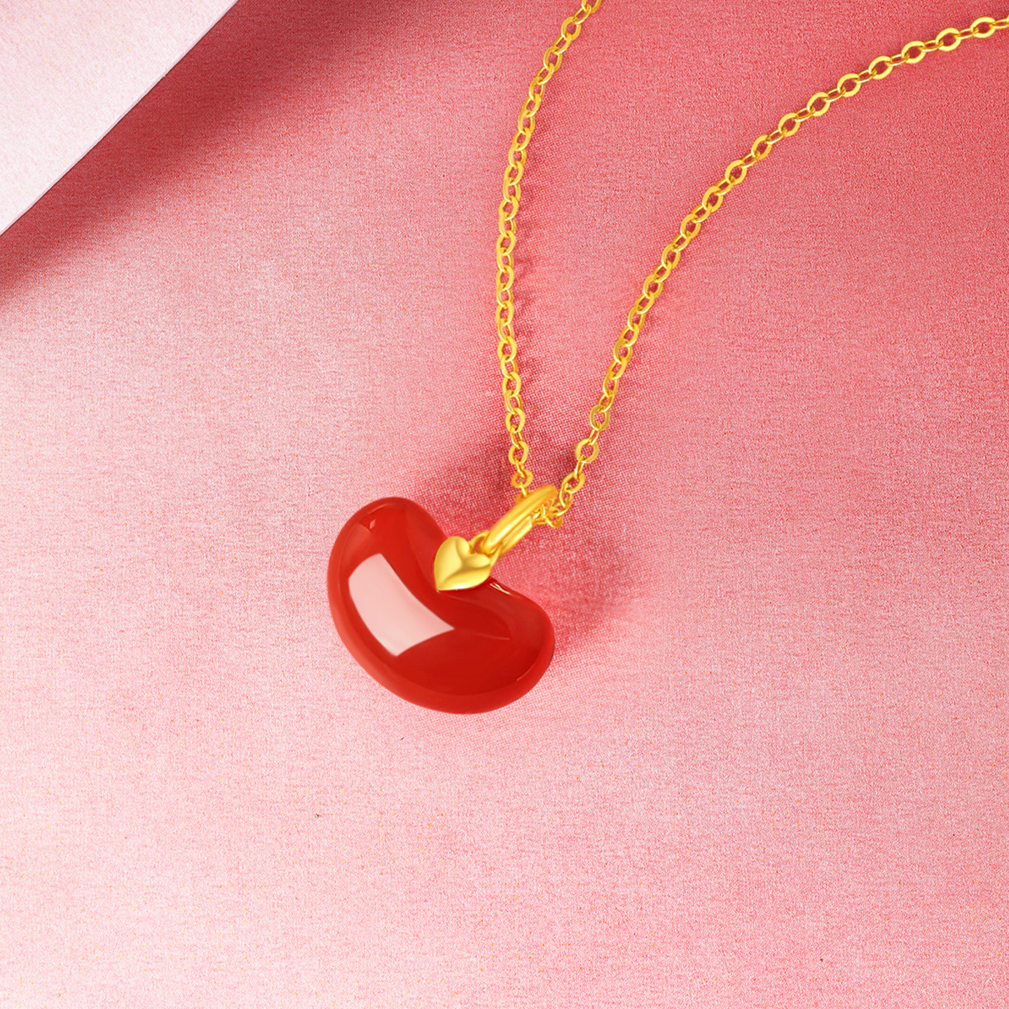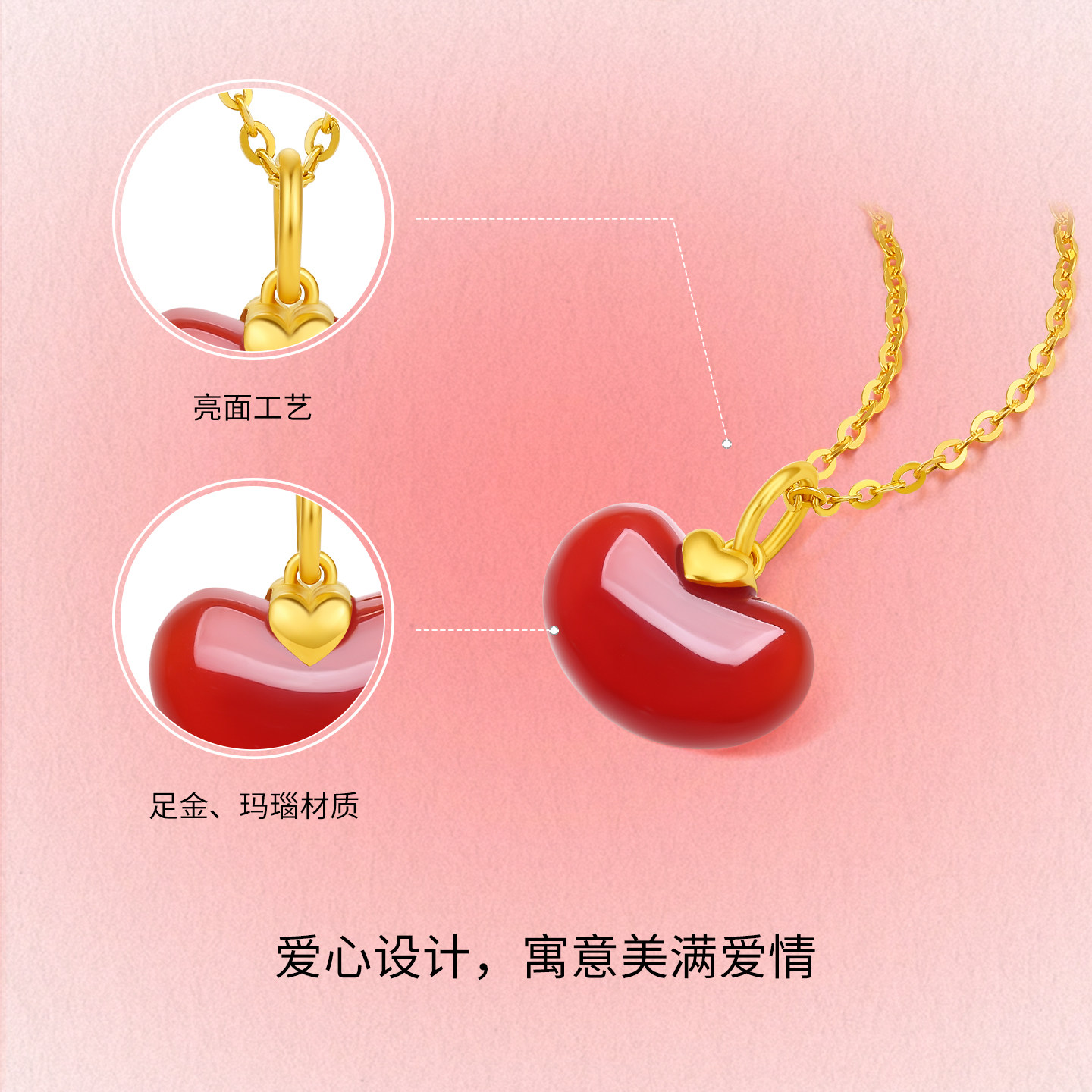 周六福玛瑙吊坠女红玛瑙黄金足金相思豆挂坠挂件节日定价圣诞礼物