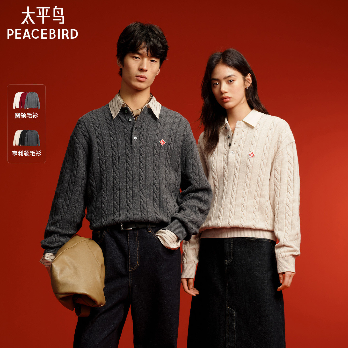【福禄绞花】太平鸟男装休闲毛衫26春季新款复古亨利领男士毛衣