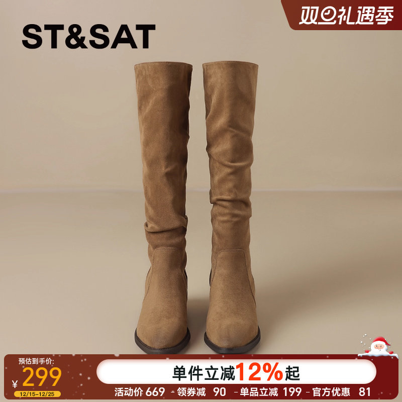 星期六秋冬加绒长筒靴美拉德堆堆靴女靴2025新款棕色靴子粗跟长靴历史价格