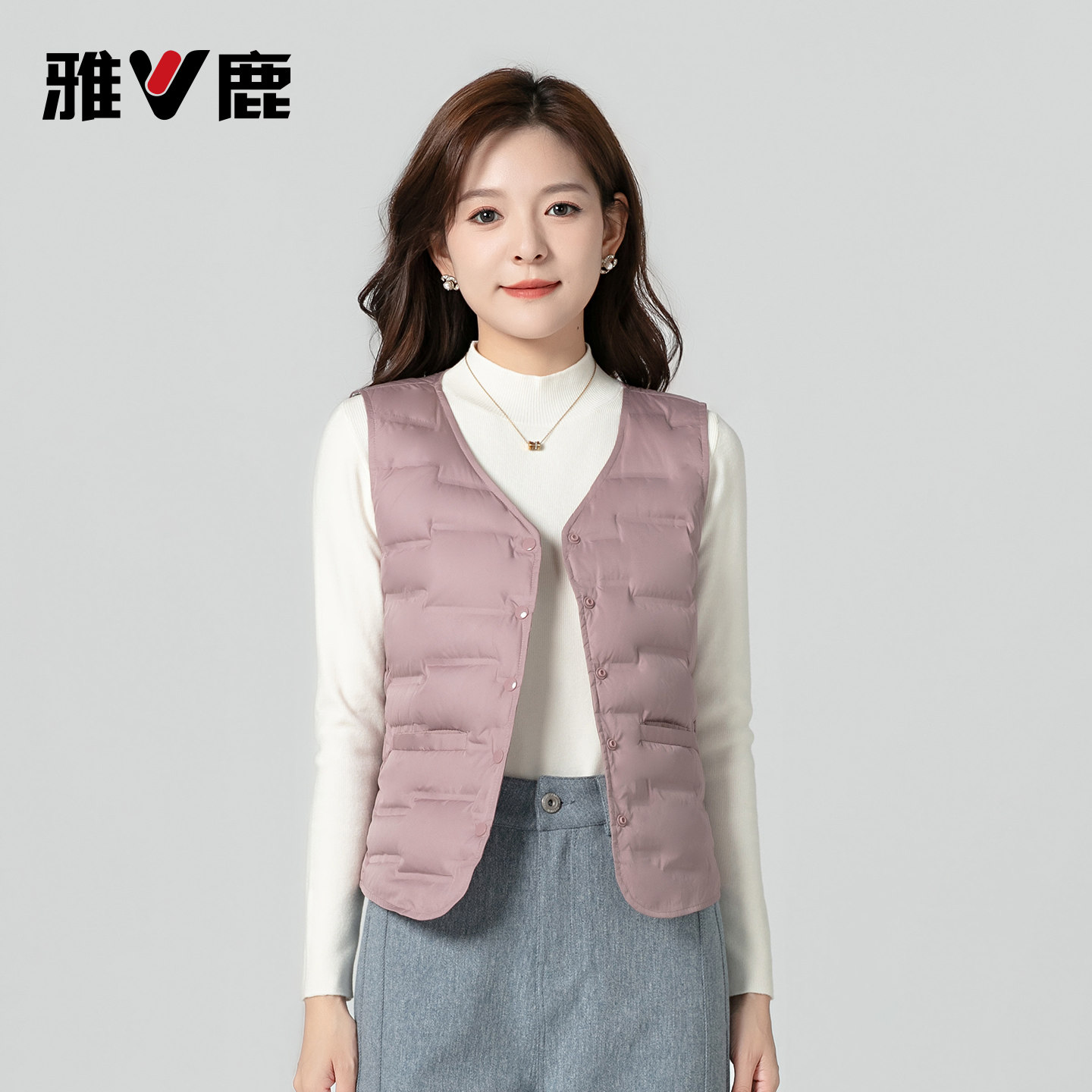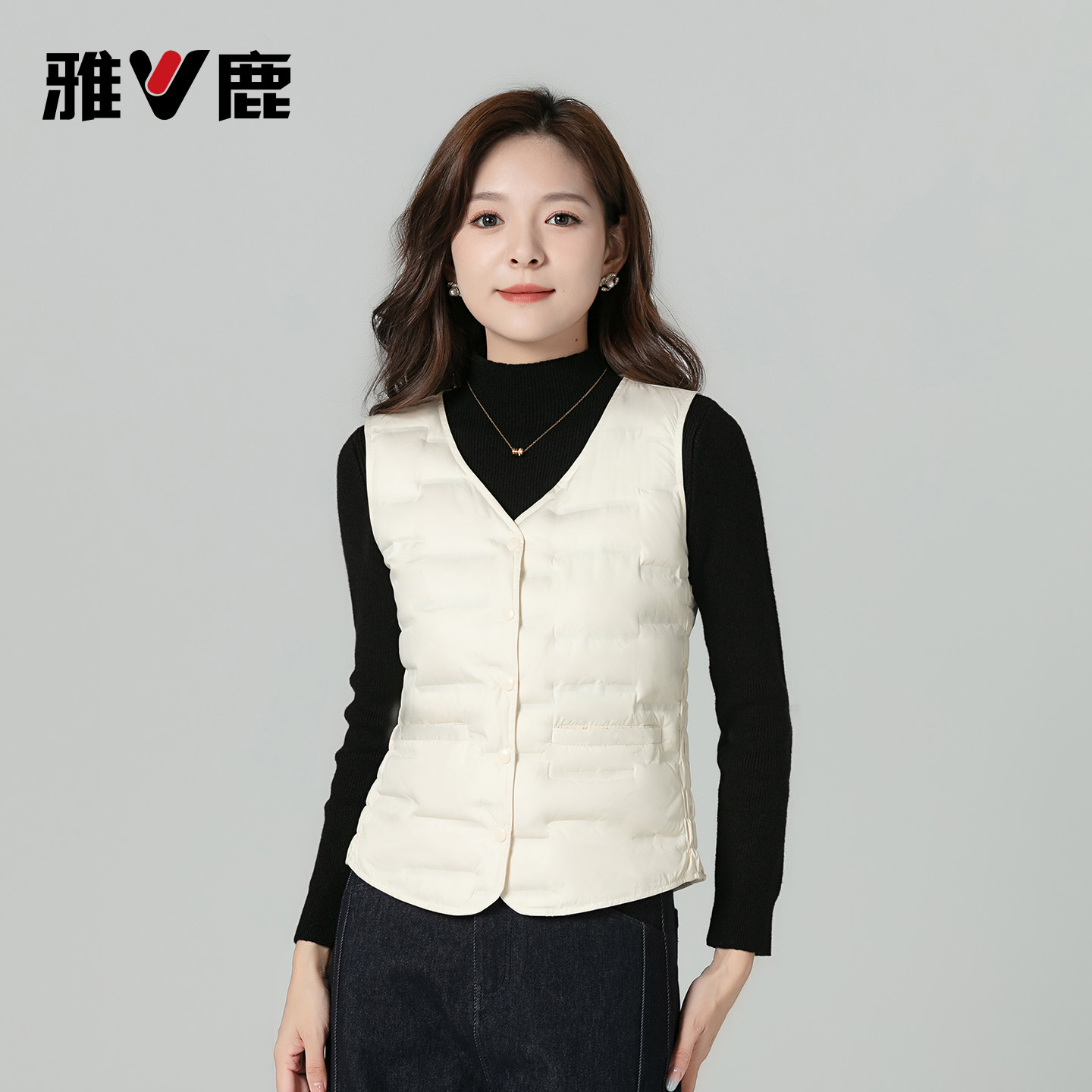 雅鹿羽绒马甲女2025新款时尚V领羽绒服内胆修身内搭鸭绒休闲背心