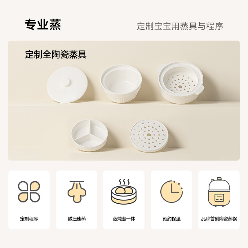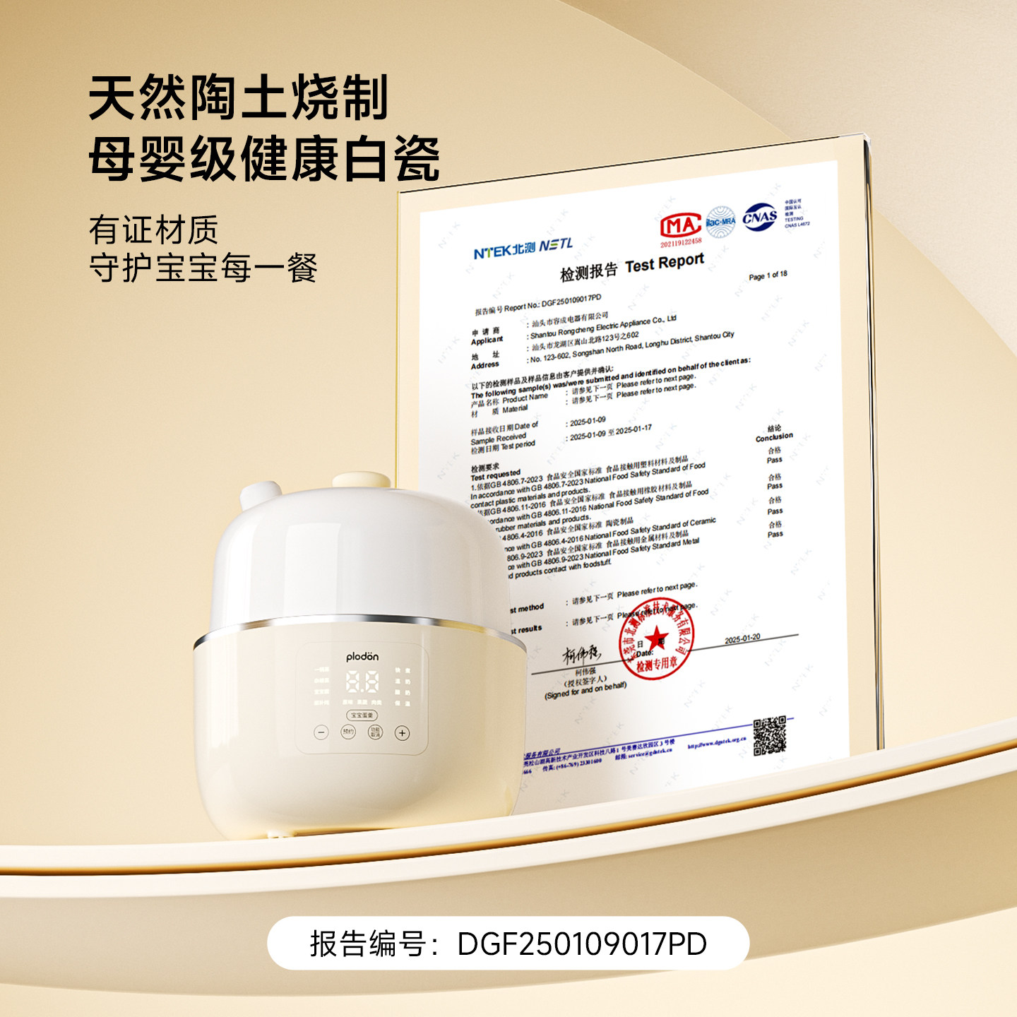 plodon浦利顿辅食锅婴儿宝宝电炖锅BB煲汤隔水炖盅微压陶瓷电蒸锅