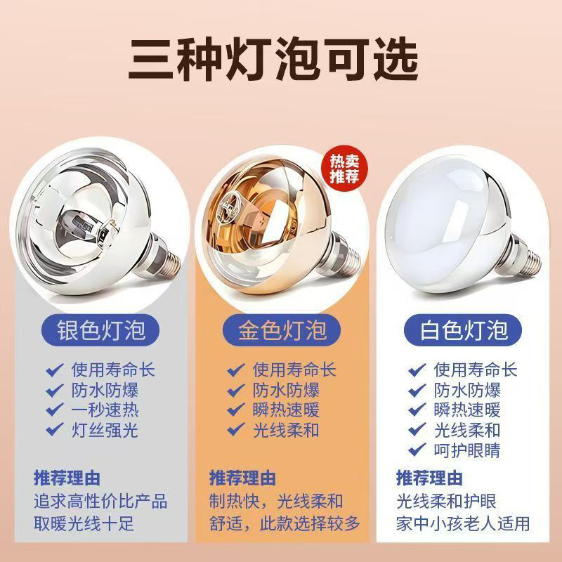 推荐理由:壁挂式灯暖浴霸取暖加热器挂墙卫生间浴室免打孔风暖防水防爆灯泡