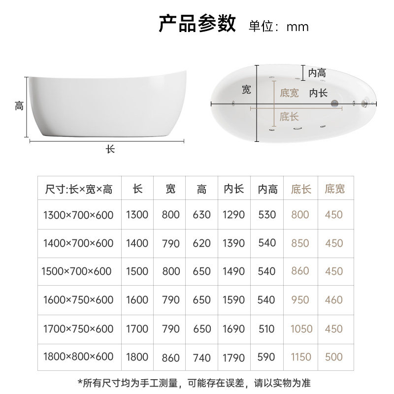 浪鲸卫浴浴缸家用成人亚克力深泡按摩缸椭圆新式泡澡锁温定制0570