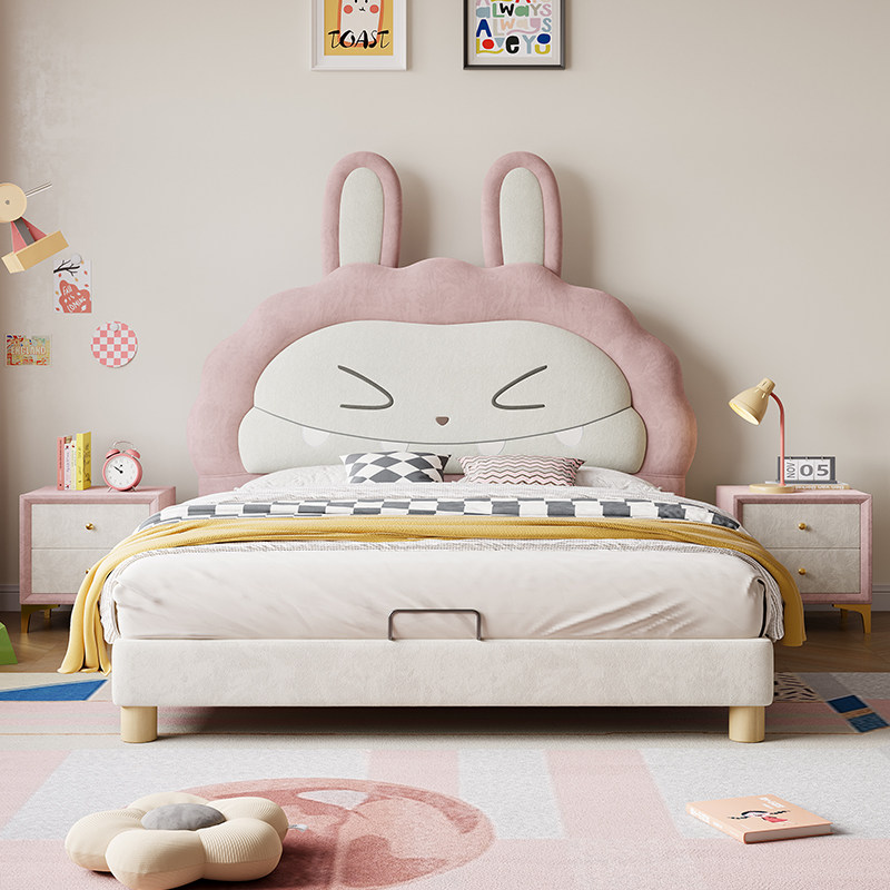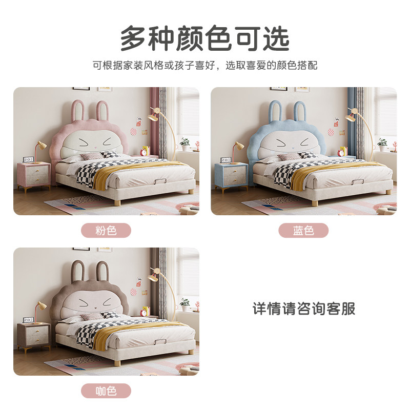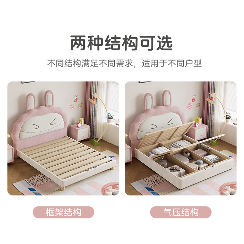 卡通拉布布儿童床女孩公主床1.5米卧室公主房现代简约储物布艺床
