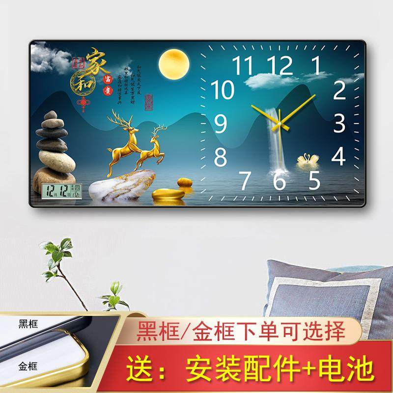 客厅墙上新款国风装饰画挂钟家用挂墙现代中式免打孔万年历石英钟