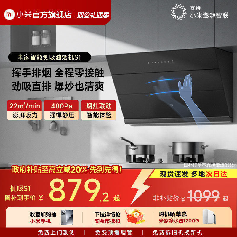 小米官方米家智能侧吸油烟机S1厨房家用抽油烟机大吸力以旧换新