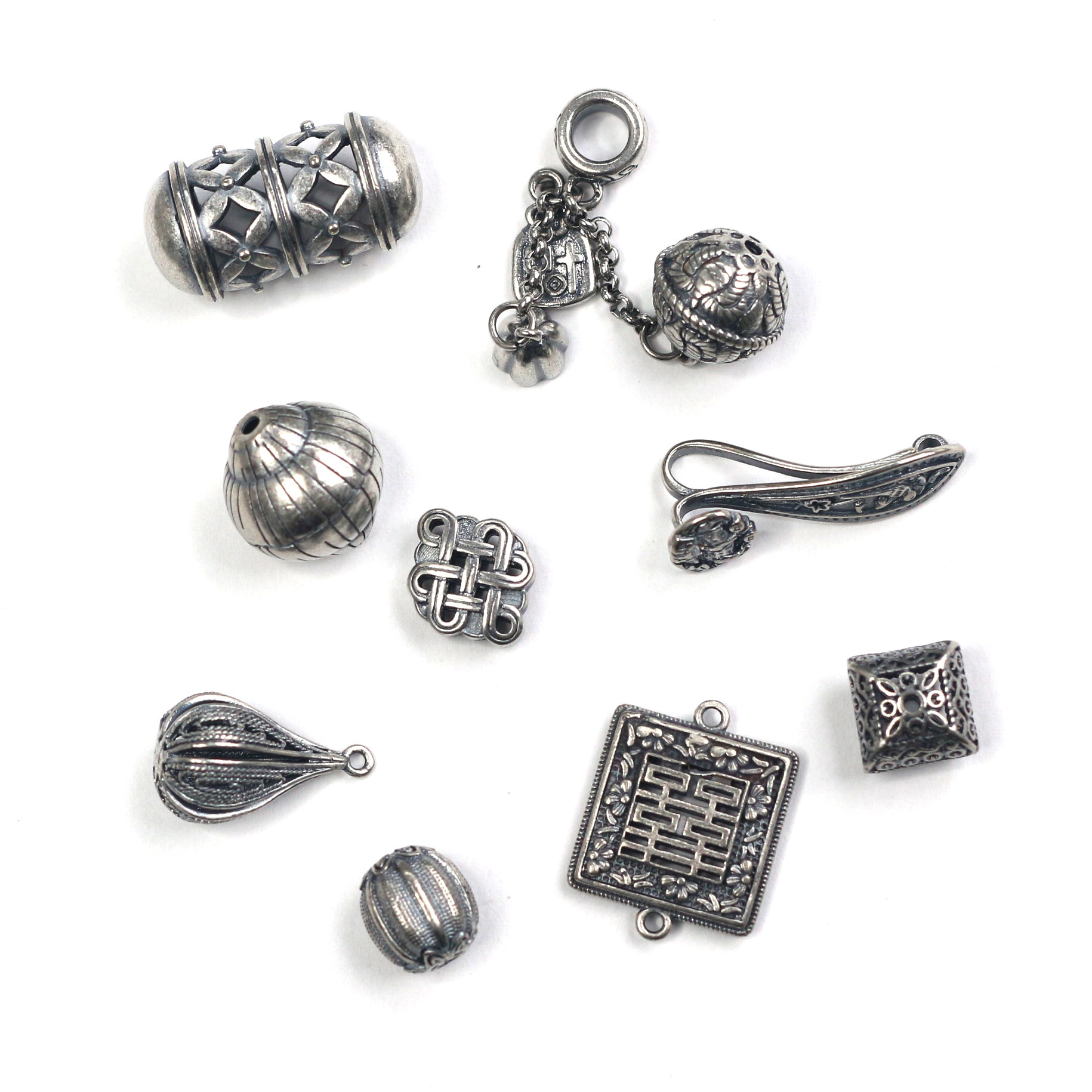 37银老银工艺手作DIY配件复古金属隔珠材质白铜+银